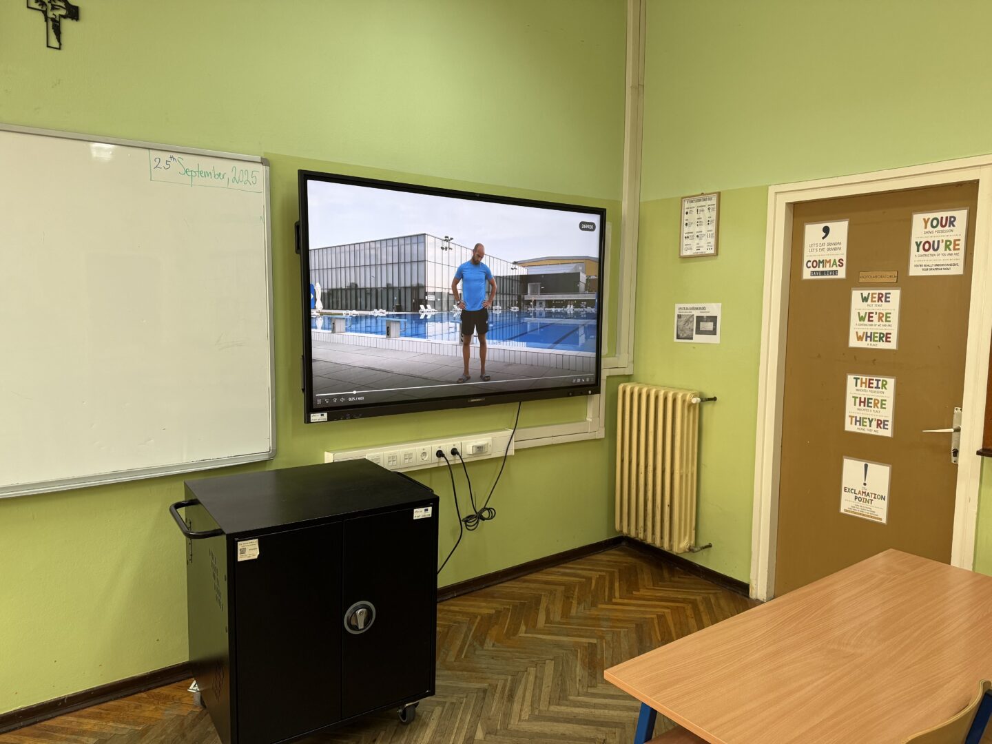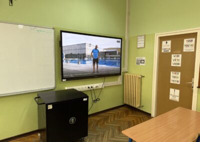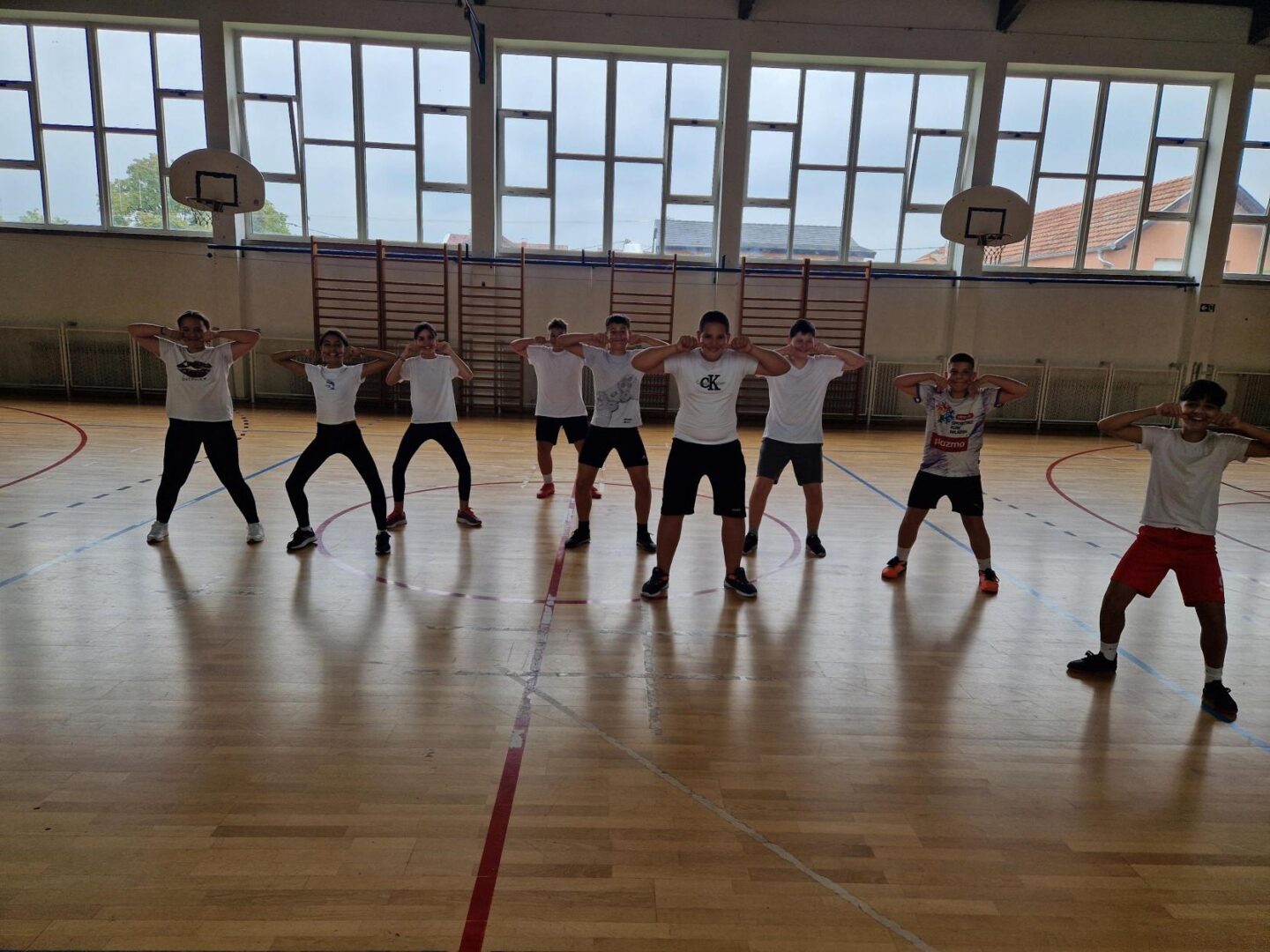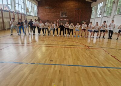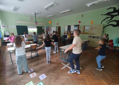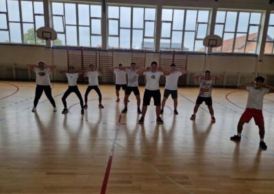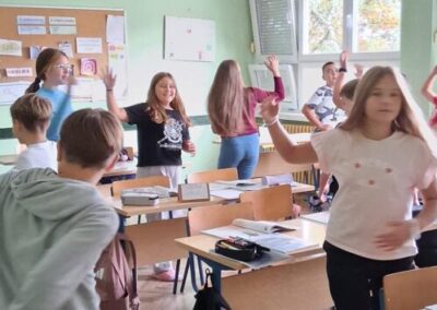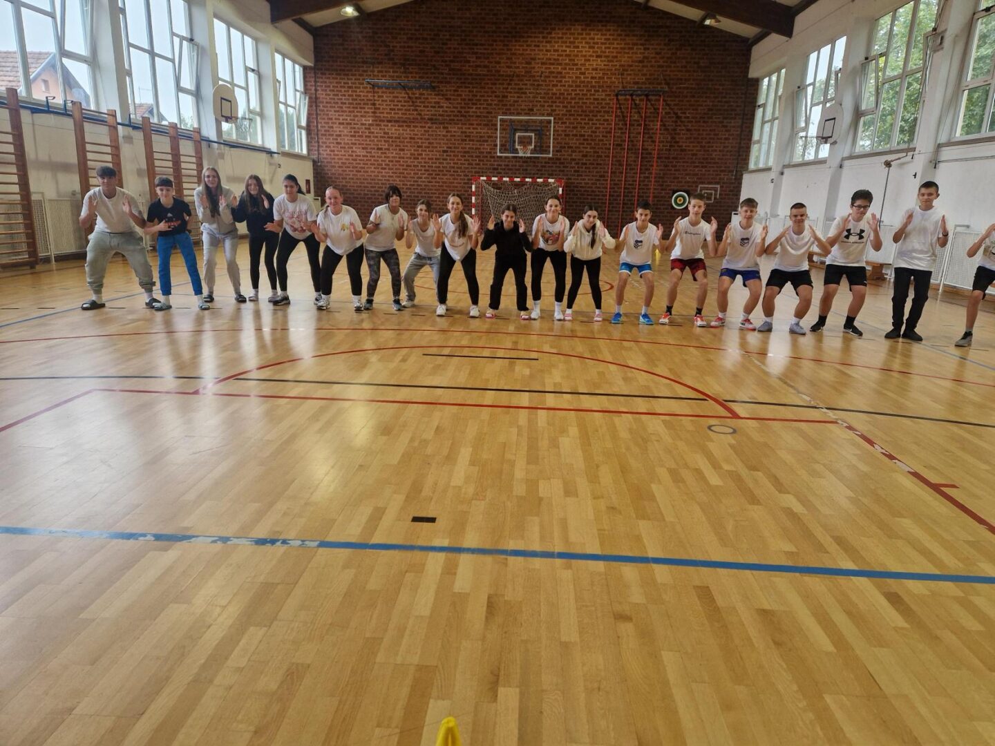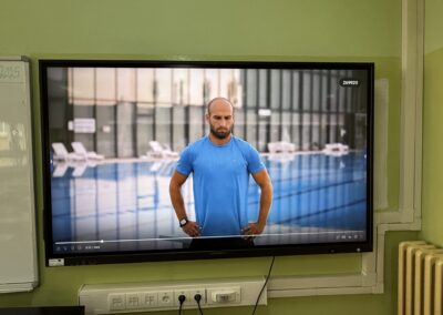 Učenici se ustaju i vježbaju u učionici pokraj svoga radnog stola dok im se puštaju kratki filmovi u kojima poznati brodski sportaši i treneri izvode vježbe pogodne za ovakvu vrstu aktivnosti.