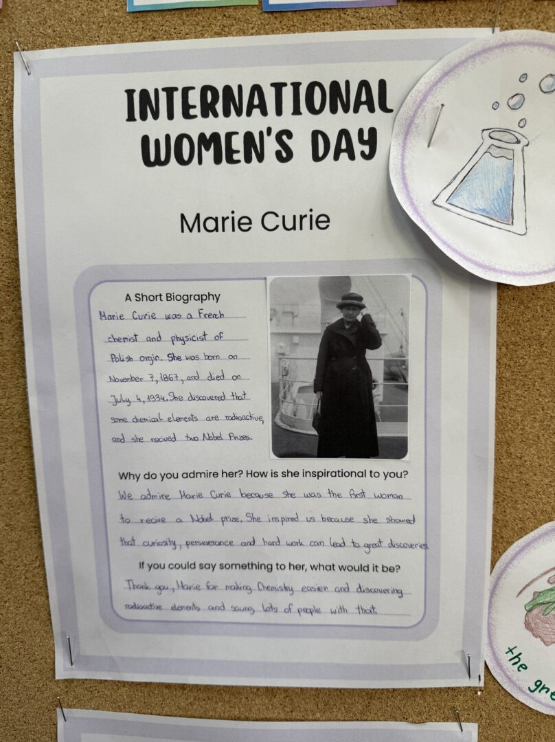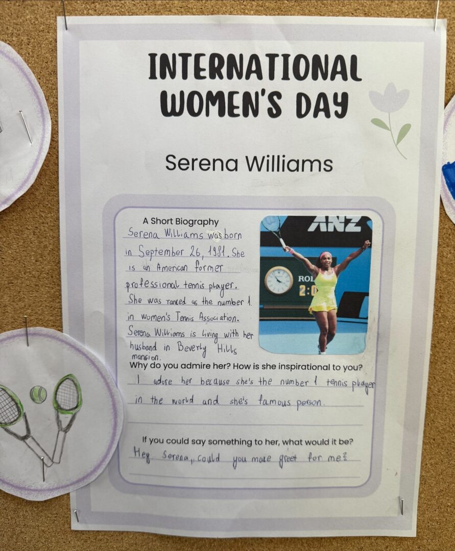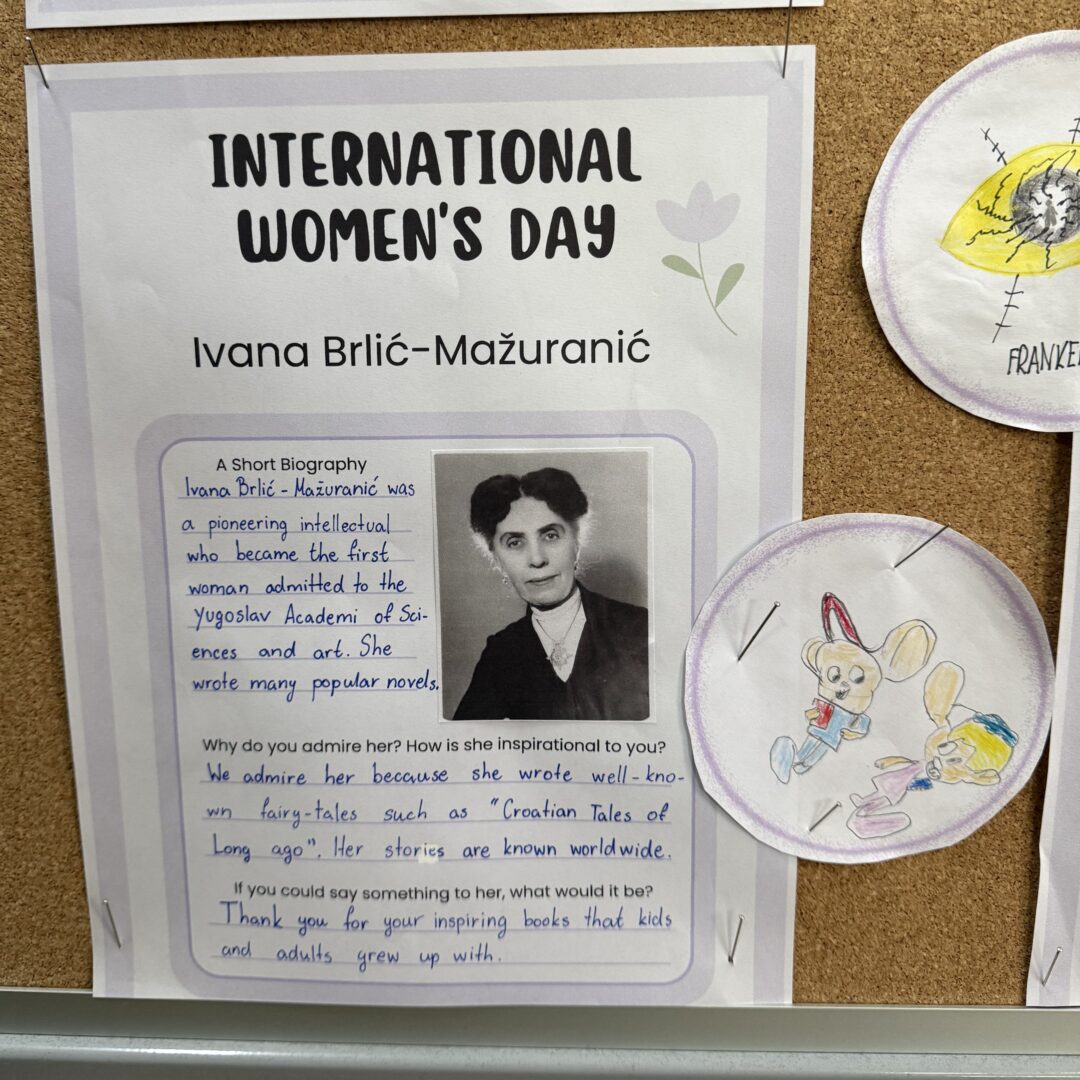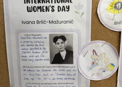 U povodu Međunarodnog dan žena koji se obilježava svake godine 8. ožujka, u našoj je školi tijekom nastave engleskog jezika provedena posebna kreativna i istraživačka aktivnost. Učenici 7. i 8. razreda istraživali su živote i postignuća 16 značajnih žena koje su svojim radom doprinijele razvoju čovječanstva. Među njima su bile znanstvenice, umjetnice, sportašice, humanitarke i druge iznimne žene koje su ostavile važan trag u različitim područjima djelovanja.