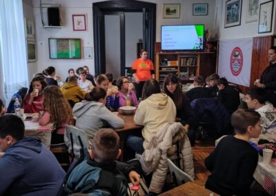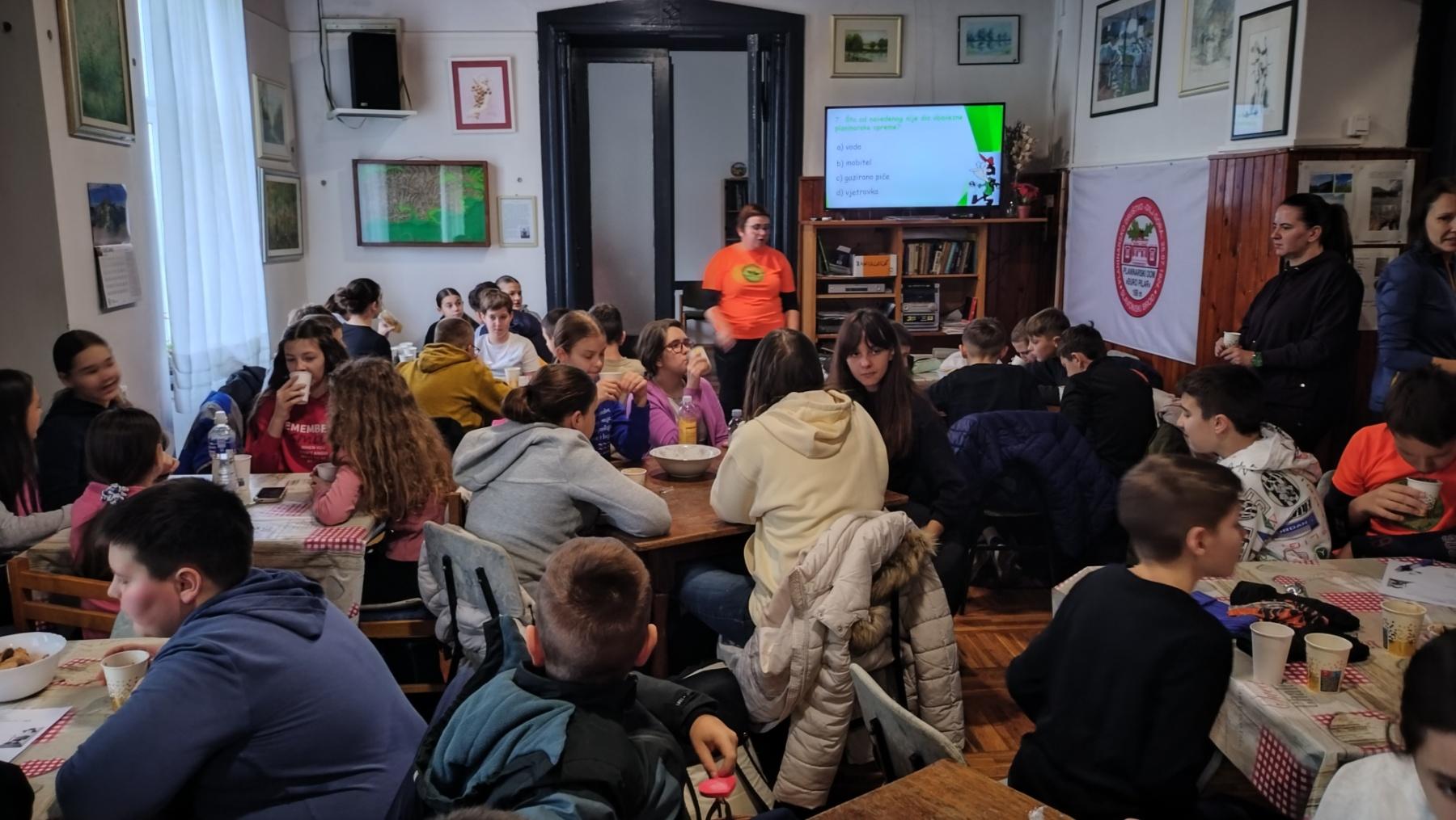 U istoimenom planinarskom domu sudjelovali su u edukativno-zabavnom kvizu o planinarstvu, prirodi i geografiji, gdje su pokazali znanje, snalažljivost i timski duh. Okrepa je svima dobro došla–topli čaj ili topla čokolada uz keksiće.