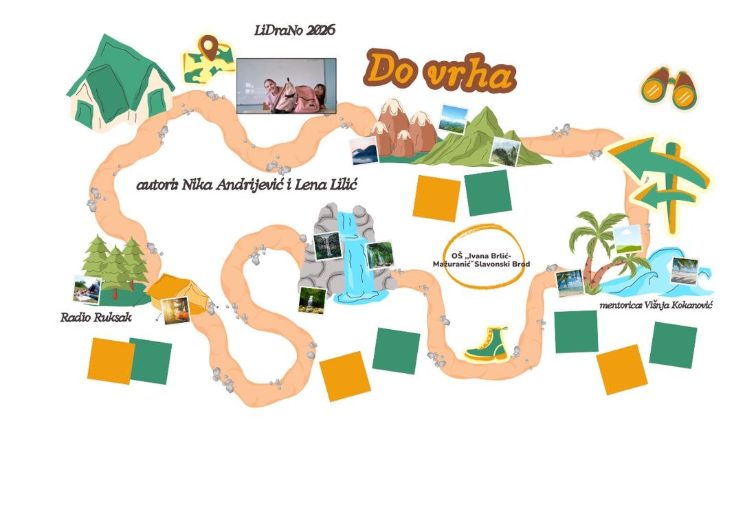 Učenice naše škole Nika Andrijević (5.b) i Lena Lilić (5.b) uz mentoricu Višnju Kokanović osmislile su i snimile radijsku emisiju Do vrha. Emisija govori o interesima naših učenika te iskustvima Malih planinara u našoj Osnovnoj školi ,, Ivana Brlić-Mažuranić˝. Planinarenje nije cilj, nego je put! Većina djece i dalje ne zna kako kvalitetno iskoristiti slobodno vrijeme. Emisija o planinarenju Do vrha možda će biti poticaj svoj djeci koja se nisu pronašli niti u jednom sportu, a žele se nečim zdravim baviti. Planinarenje će svakako biti zanimljiv, poticajan i zdrav izbor. ,,Vidimo se na vrhu!˝ završne su riječi naših malih radijskih voditeljica Nike Andrijević i Lene Lilić. Poslušajte!