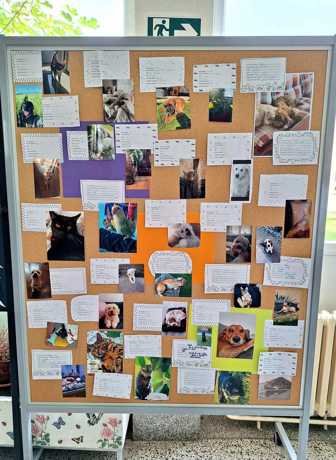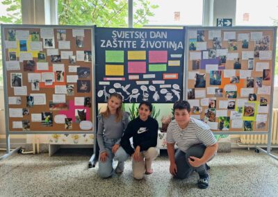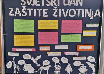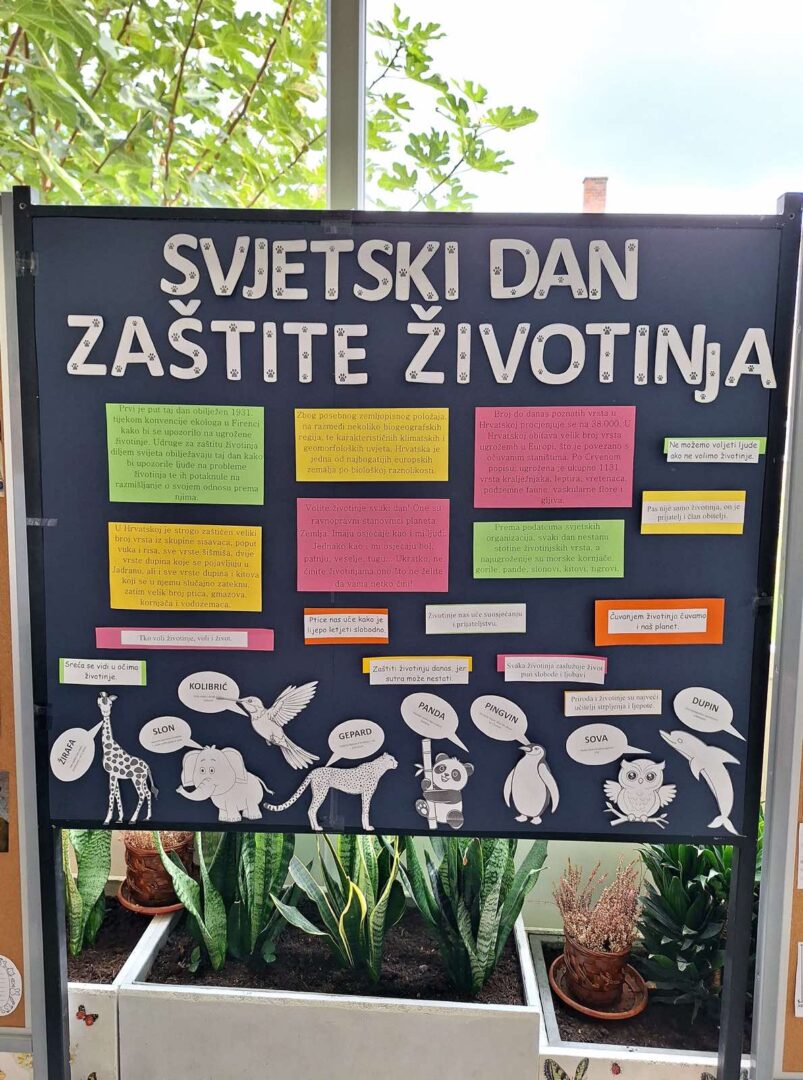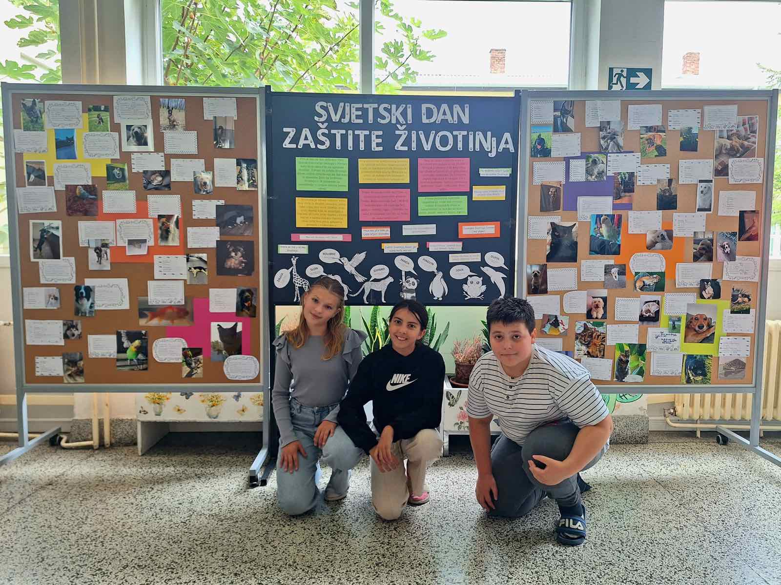 U našoj školi obilježili smo Svjetski dan zaštite životinja izradom prigodnog panoa i izložbom fotografija kućnih ljubimaca. Učenici koji su sudjelovali u izložbi donijeli su fotografiju svog ljubimca i ispunili osobnu iskaznicu s osnovnim podacima i zanimljivostima o njemu.