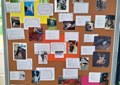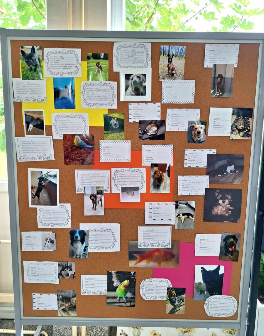 U postavljanju izložbe učiteljicama su marljivo pomagali učenici 6. razreda koji su s puno truda i maštovitosti uredili pano, rasporedili fotografije i iskaznice te dodali prigodne poruke o važnosti brige i zaštite životinja.