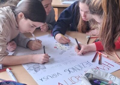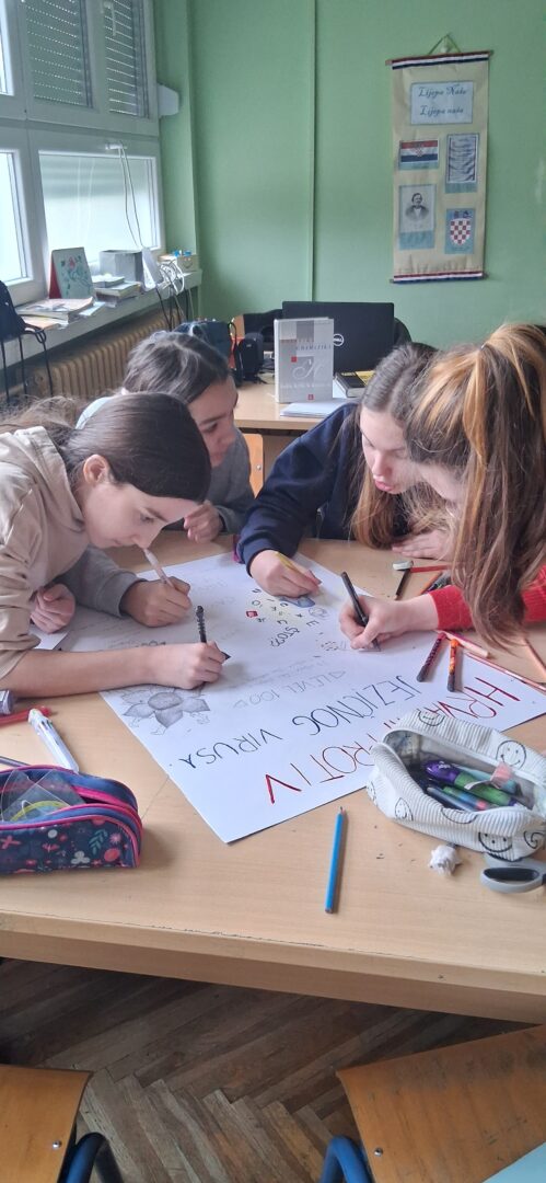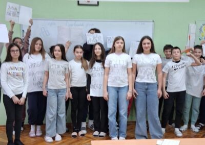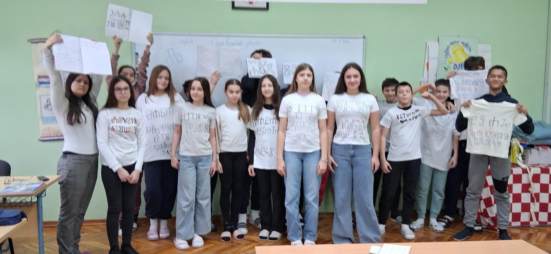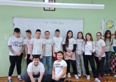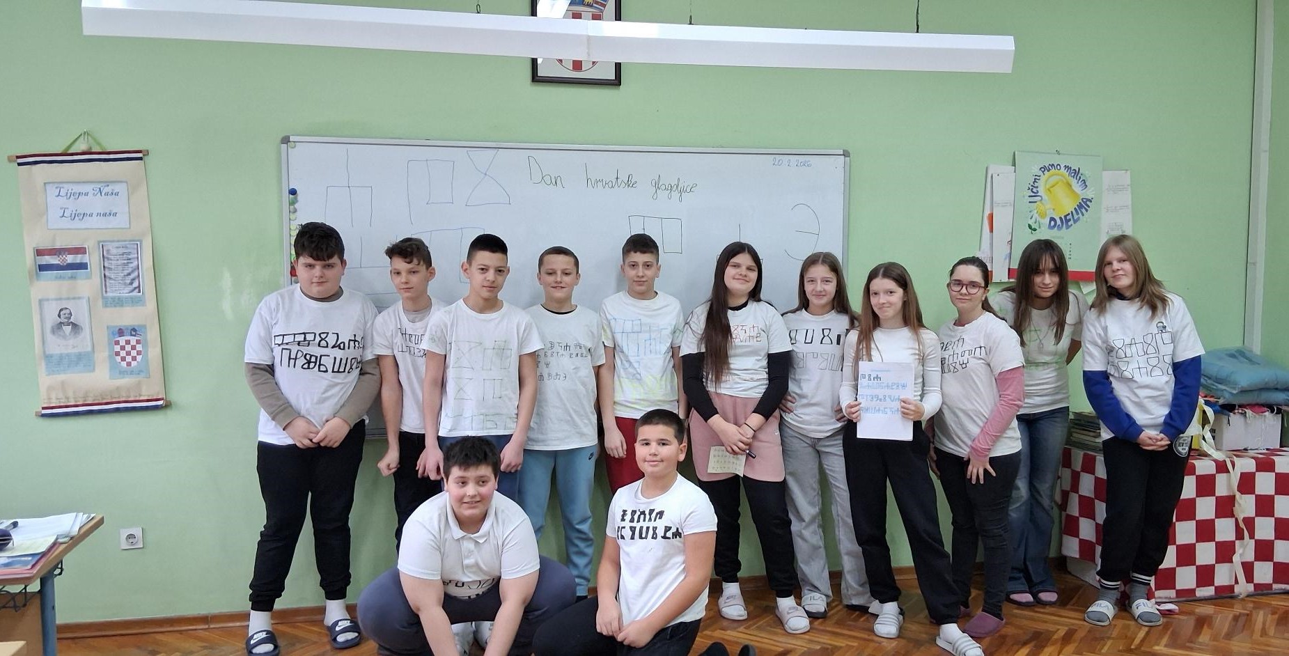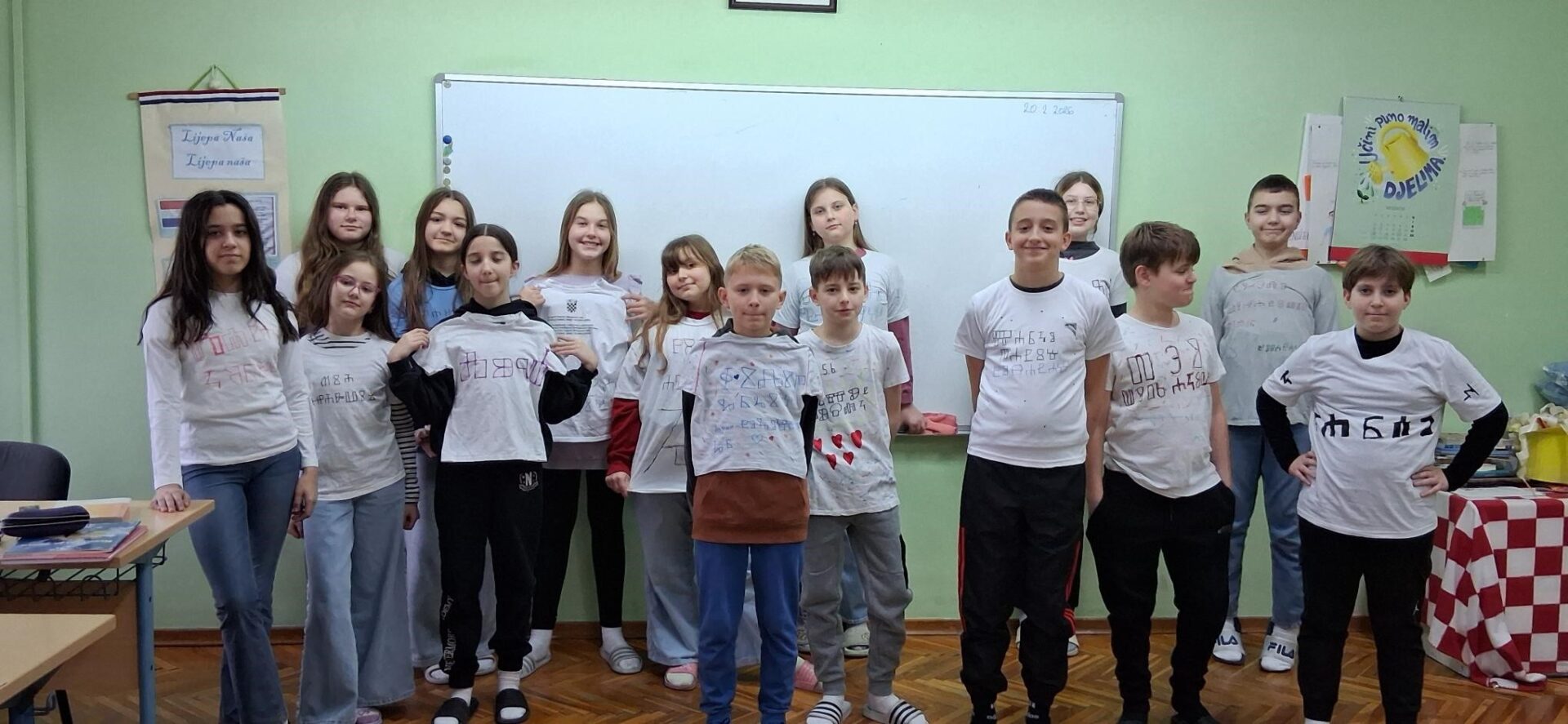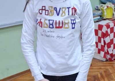 Mislima velikog nobelovca pridružili su se mnogi diljem Lijepe Naše kao i učenici Osnovne škole ,, Ivana Brlić-Mažuranić˝ Slavonski Brod. U nadolazećim danima Mjeseca hrvatskoga jezika koji traju od 21. veljače do 17.ožujka ističe se značaj materinjeg jezika. Trebali bismo znati da kvalitetnog obrazovanja nema bez posebne brige o jeziku. Važnost očuvanja materinjih jezika bitna je za sve narode u svim vremenima, međutim, naglašava se 21. veljače uz Međunarodni dan materinjeg jezika. Spominjanju važnih datuma u Mjesecu hrvatskoga jezika pridružili su se i učenici 5.ab i 6.ab razreda nizom projektnih aktivnosti na nastavi Hrvatskoga jezika. Učiteljica Višnja Kokanović poticala je učenike da na kreativan način osvijeste važnost očuvanja materinjeg jezika i popularizira ljubav prema standardnom književnom jeziku i jezičnoj baštini što je vidljivo i na aktivnoj poveznici. Počast najljepšem hrvatskom pismu – uglatoj glagoljici, simbolično su obilježavali ranije-ususret spomendanu 22. veljače 2026. Učenici su na svojim majicama oslikavali glagoljička slova. Na taj način su se i prisjetili prve hrvatske knjige-Misala po rimskome dvoru koji je nastao 1483., upravo, baš na taj dan.